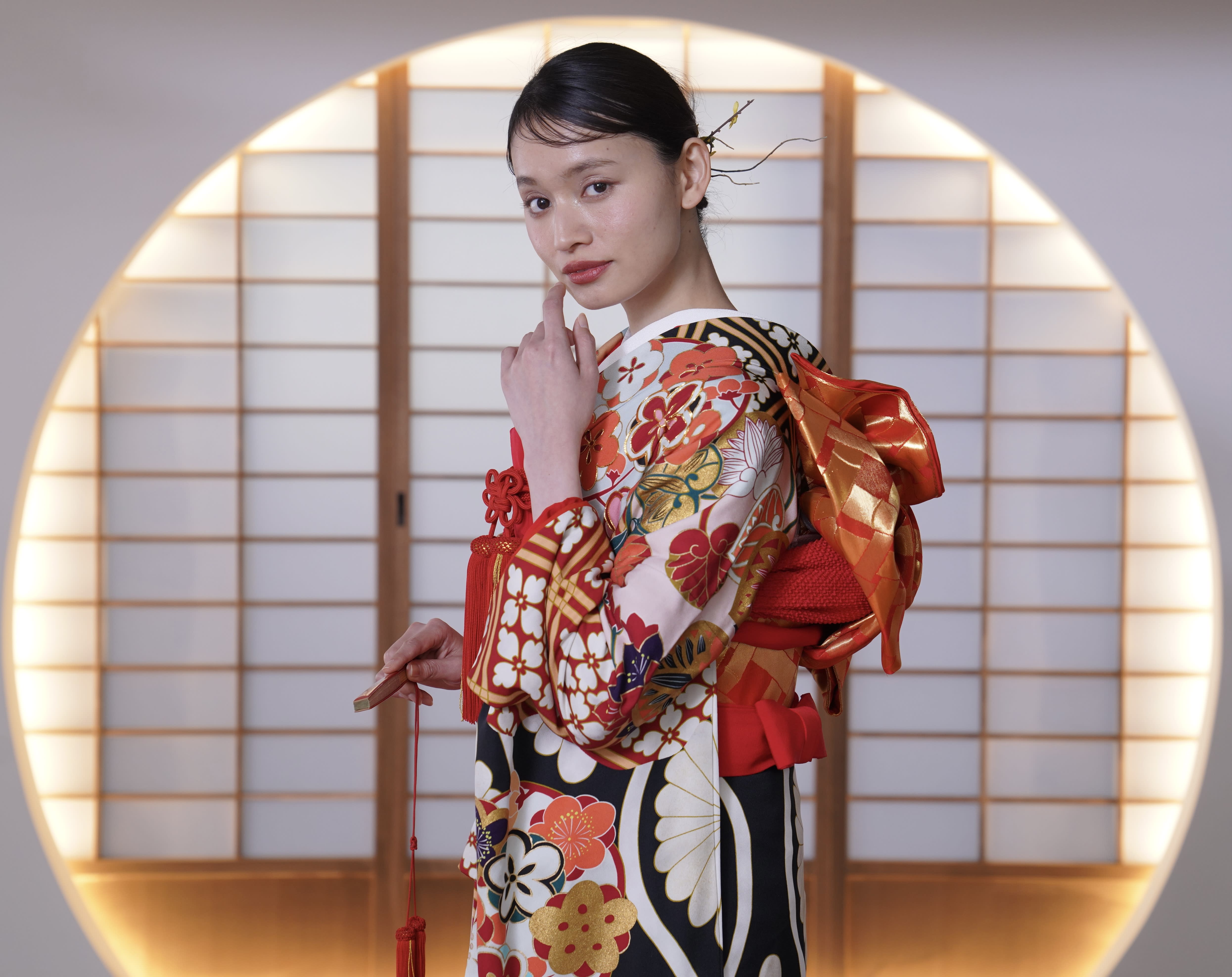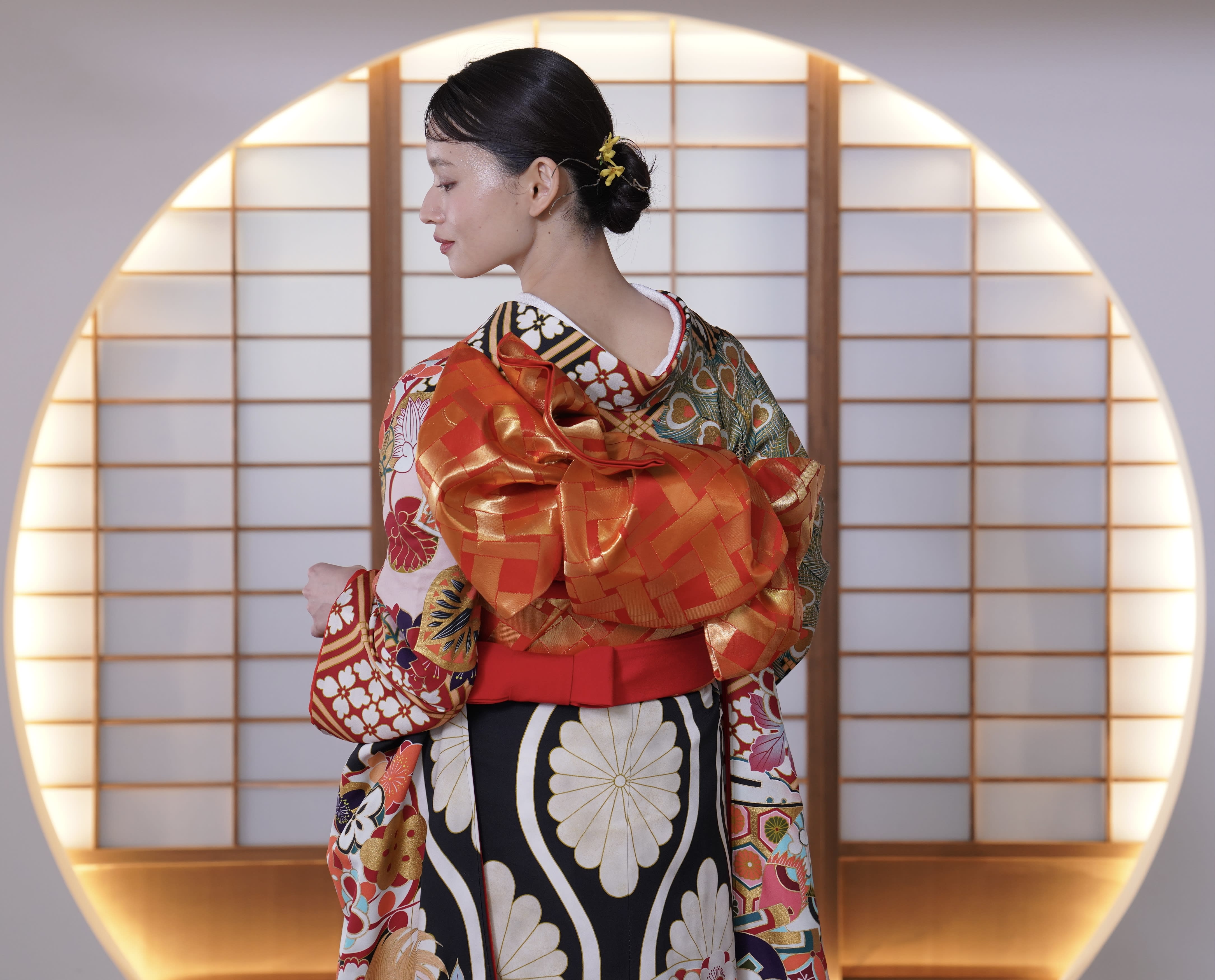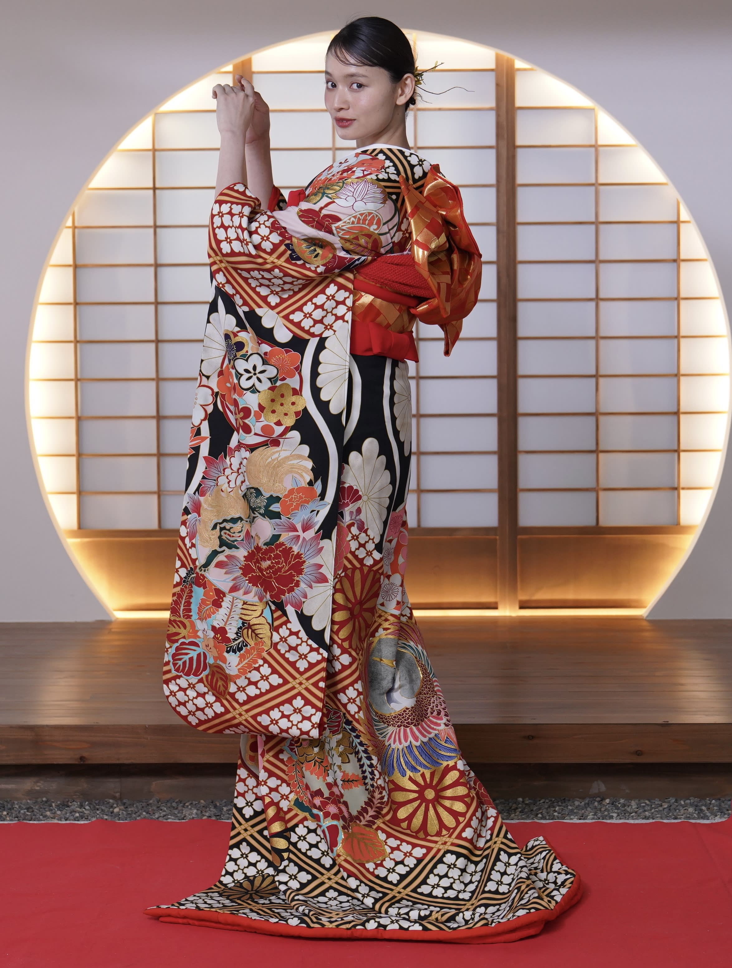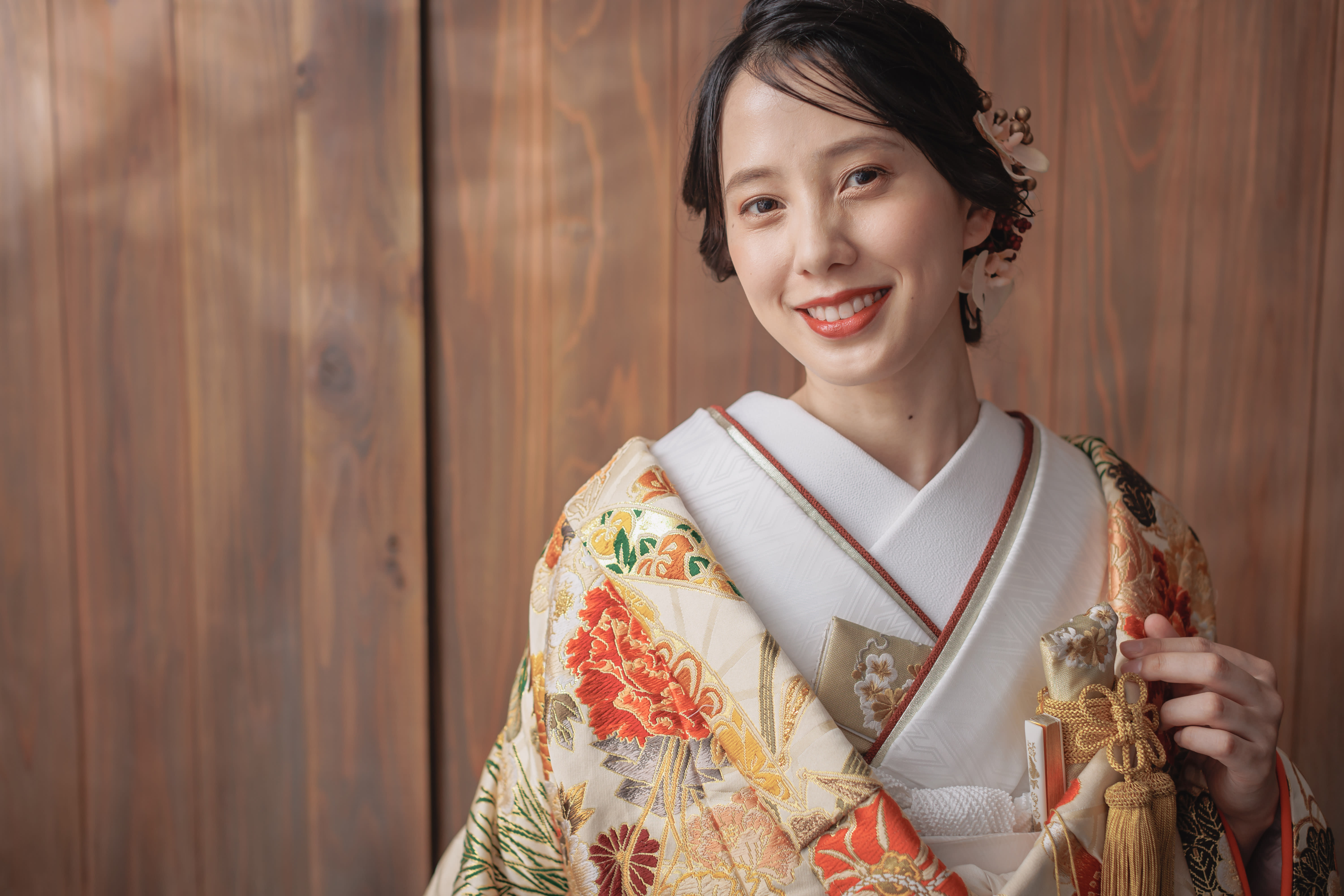 新宿店の本格的な茶室スタジオで撮影する、和装の結婚写真