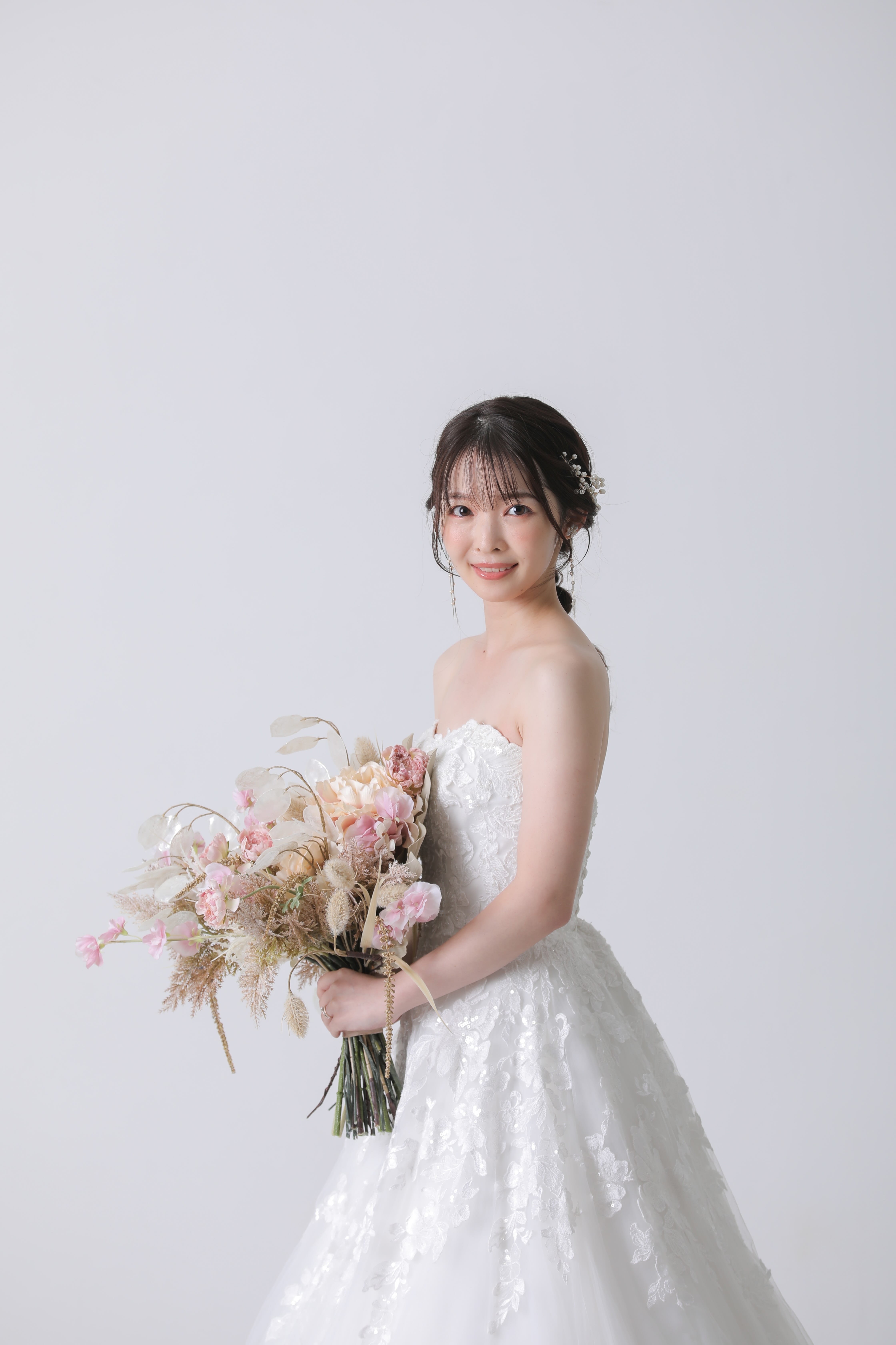 新郎新婦様お二人の個性やお好みに合ったヘアメイク、お衣装選び、小物アレンジをご提案させて頂きます。 新婦様の柔らかい雰囲気を引き出せるようなヘアメイクを心がけております。 一級着付け技能士資格も取得し、着付けの技術にこだわって新郎新婦様のお着付けをさせていただいております!! 美容師の経験を積み、現在のヘアメイクの仕事をさせていただいてます。 お二人らしさが残るウェディングフォトのサポートさせて頂きます!! どこの店舗でもご指名を承ります。 ヘアメイク歴 14年 美容師国家資格取得 一級着付け技能士資格取得