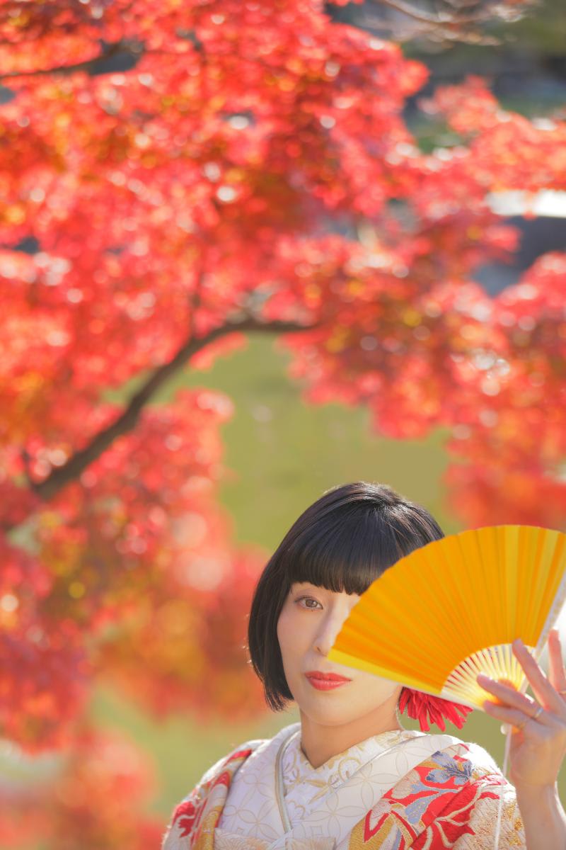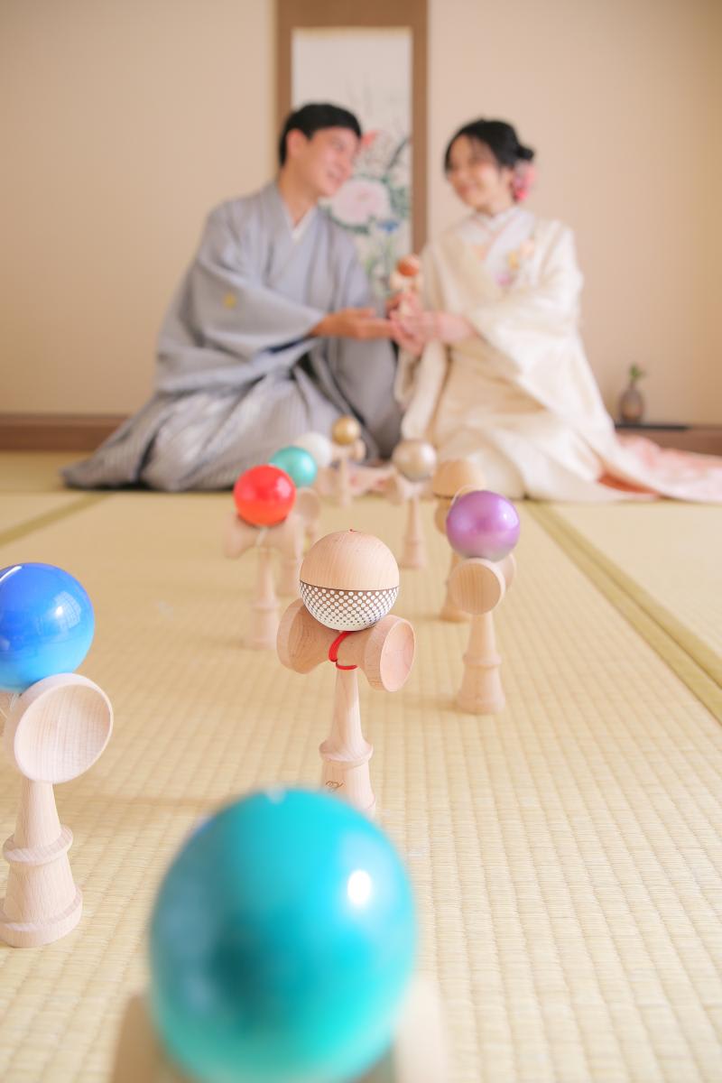 本格日本庭園を再現したスタジオで撮る 和装の結婚写真
