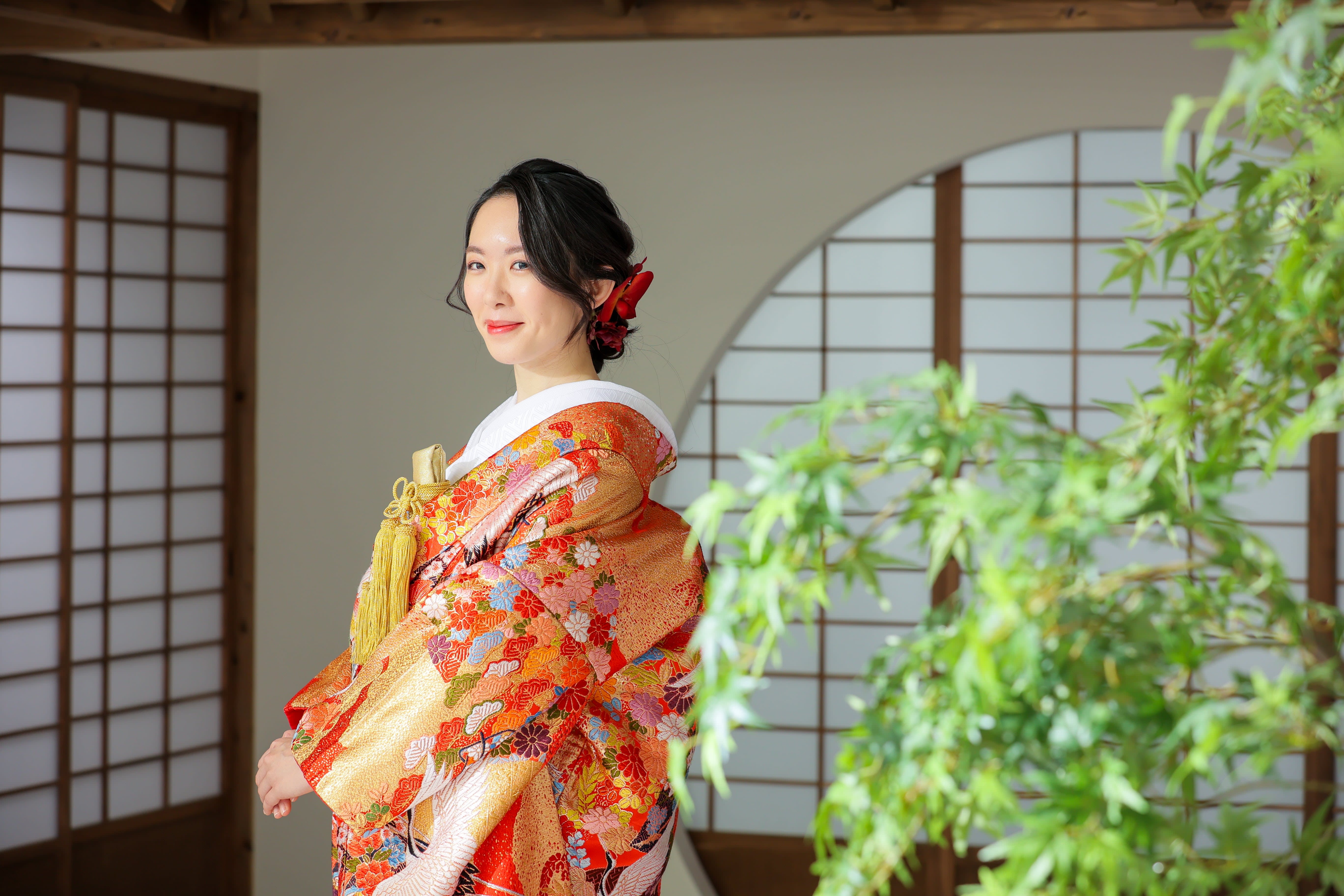 本格日本庭園を再現したスタジオで撮る 和装の結婚写真