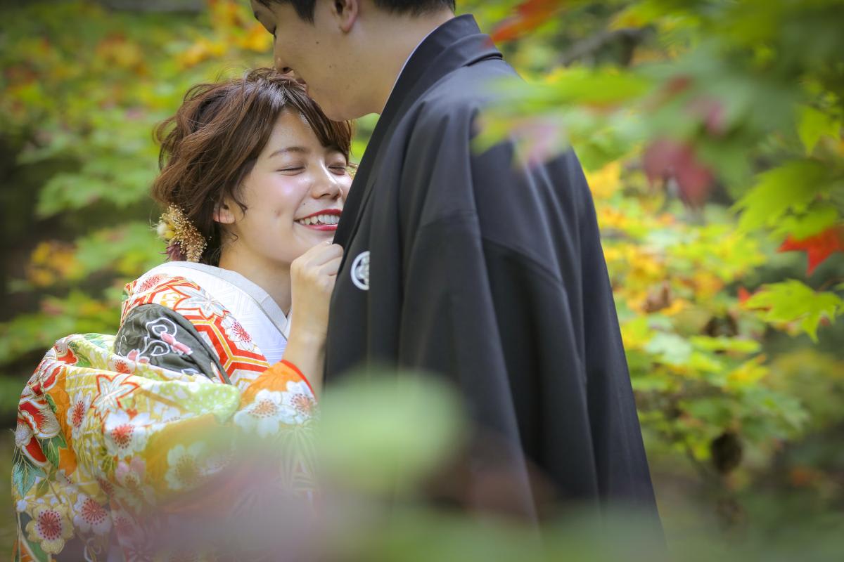 本格日本庭園を再現したスタジオで撮る 和装の結婚写真
