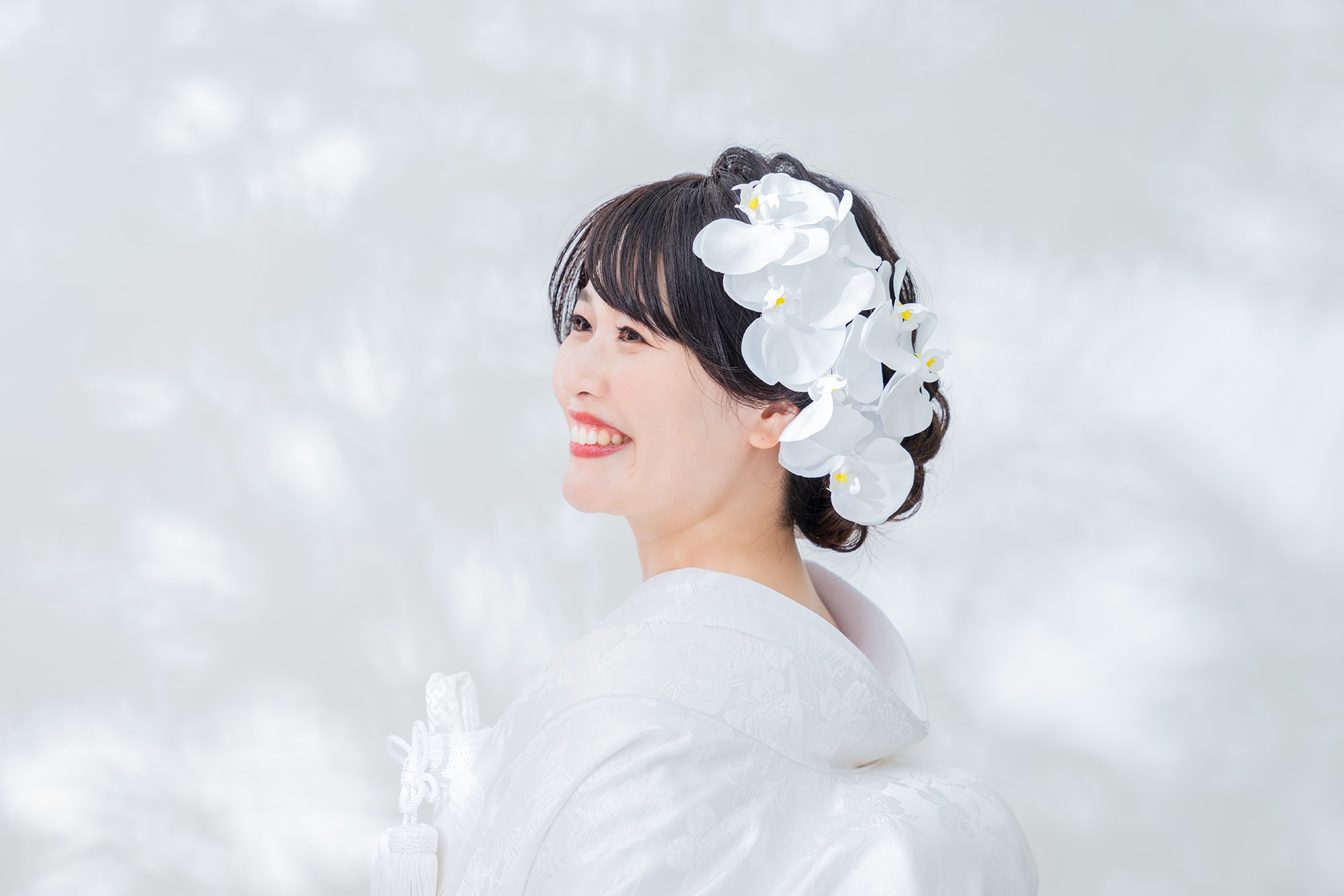 一面お花の壁が登場! 洋館風の立川店スタジオで撮影する洋装ウェディングフォトプラン