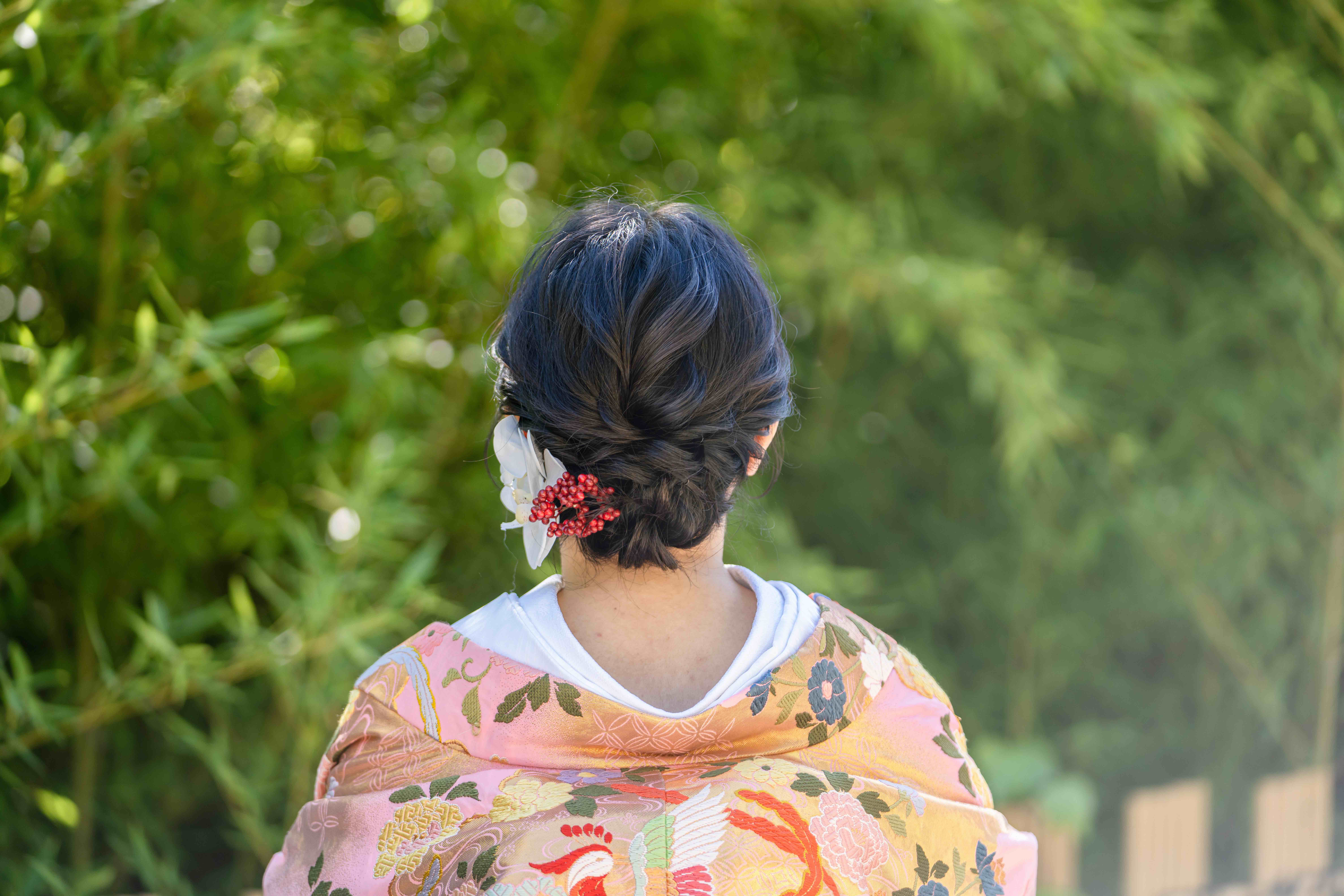 本格日本庭園を再現したスタジオで撮る 和装の結婚写真