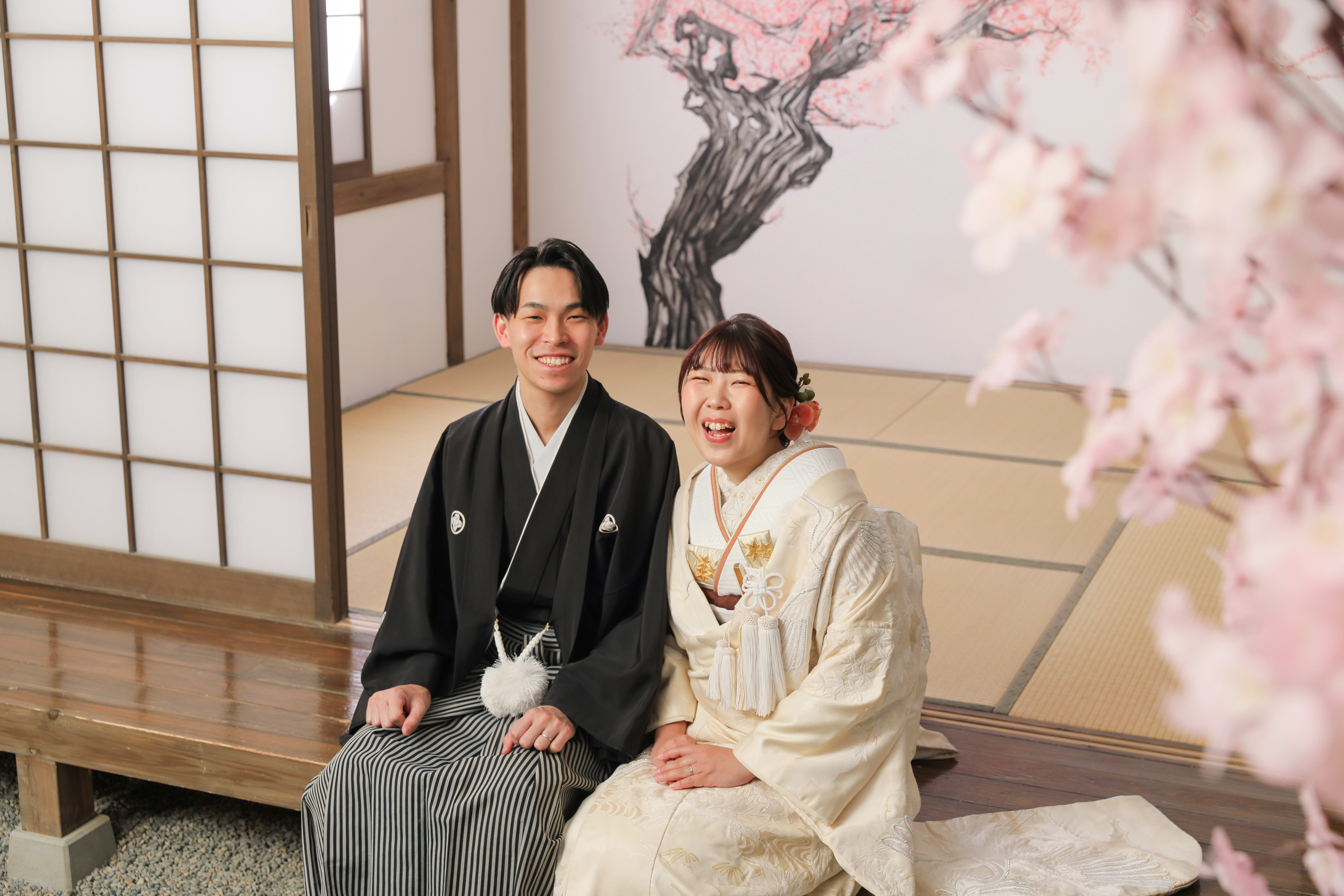 本格日本庭園を再現したスタジオで撮る 和装の結婚写真
