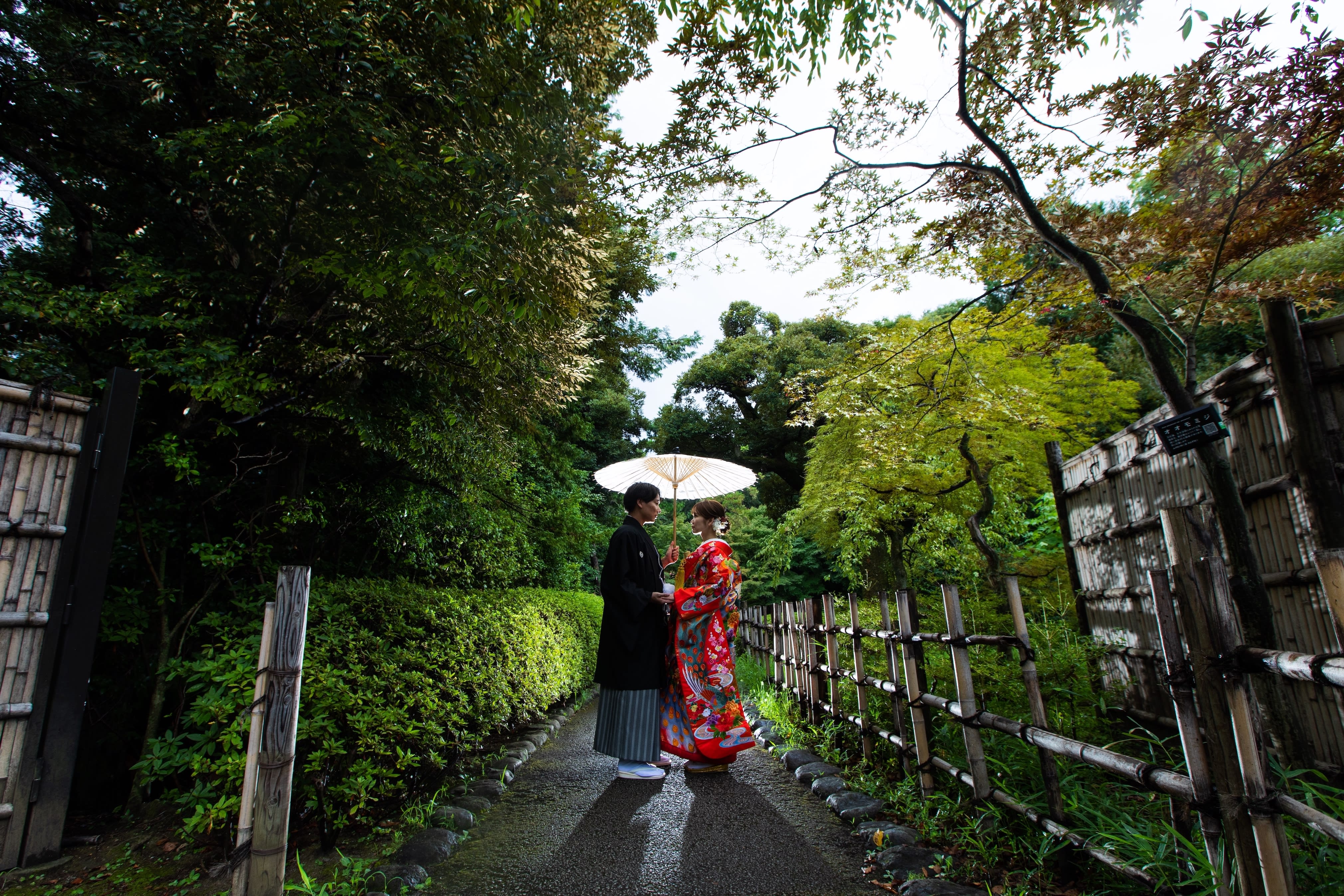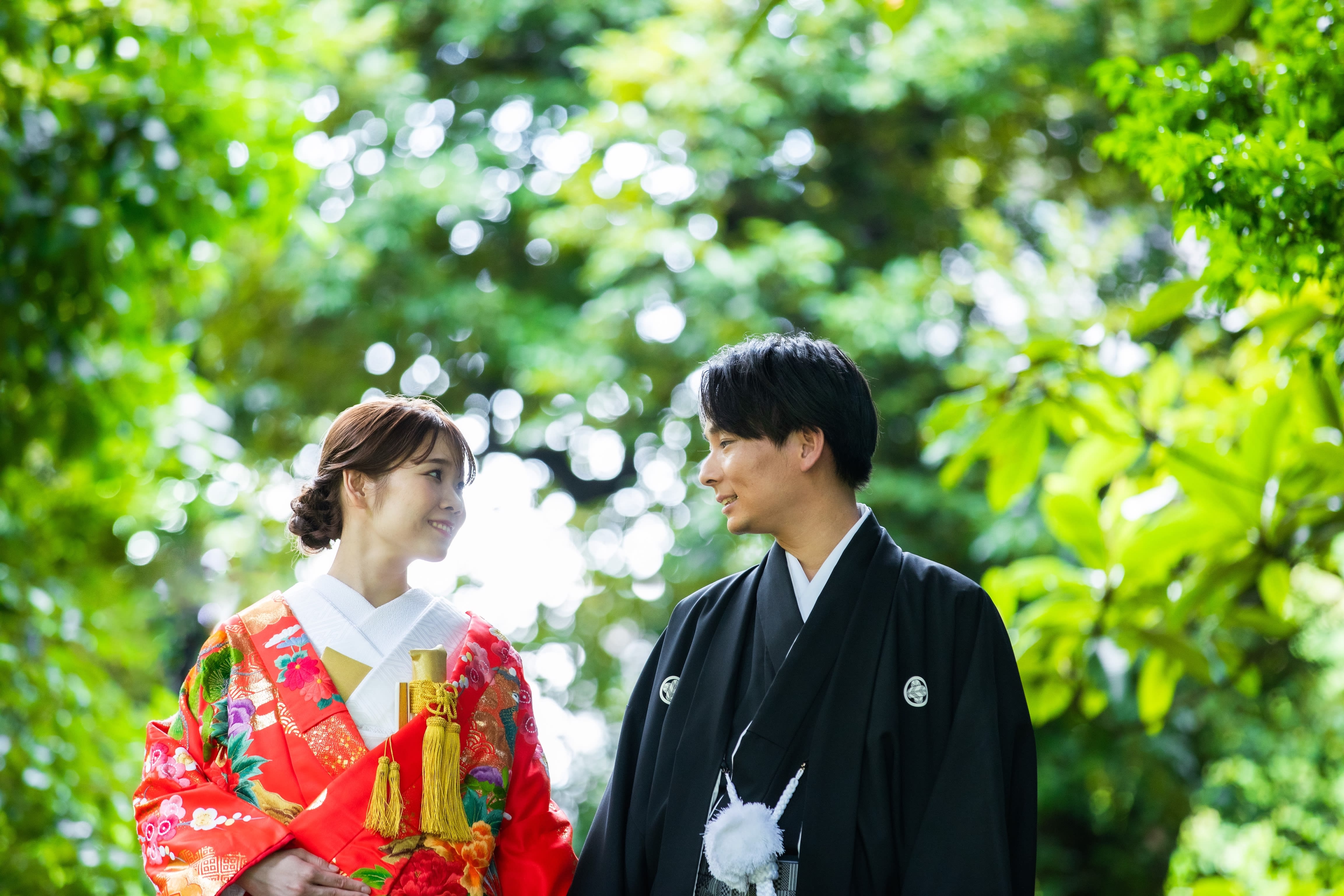 新宿店の本格的な茶室スタジオで撮影する、和装の結婚写真
