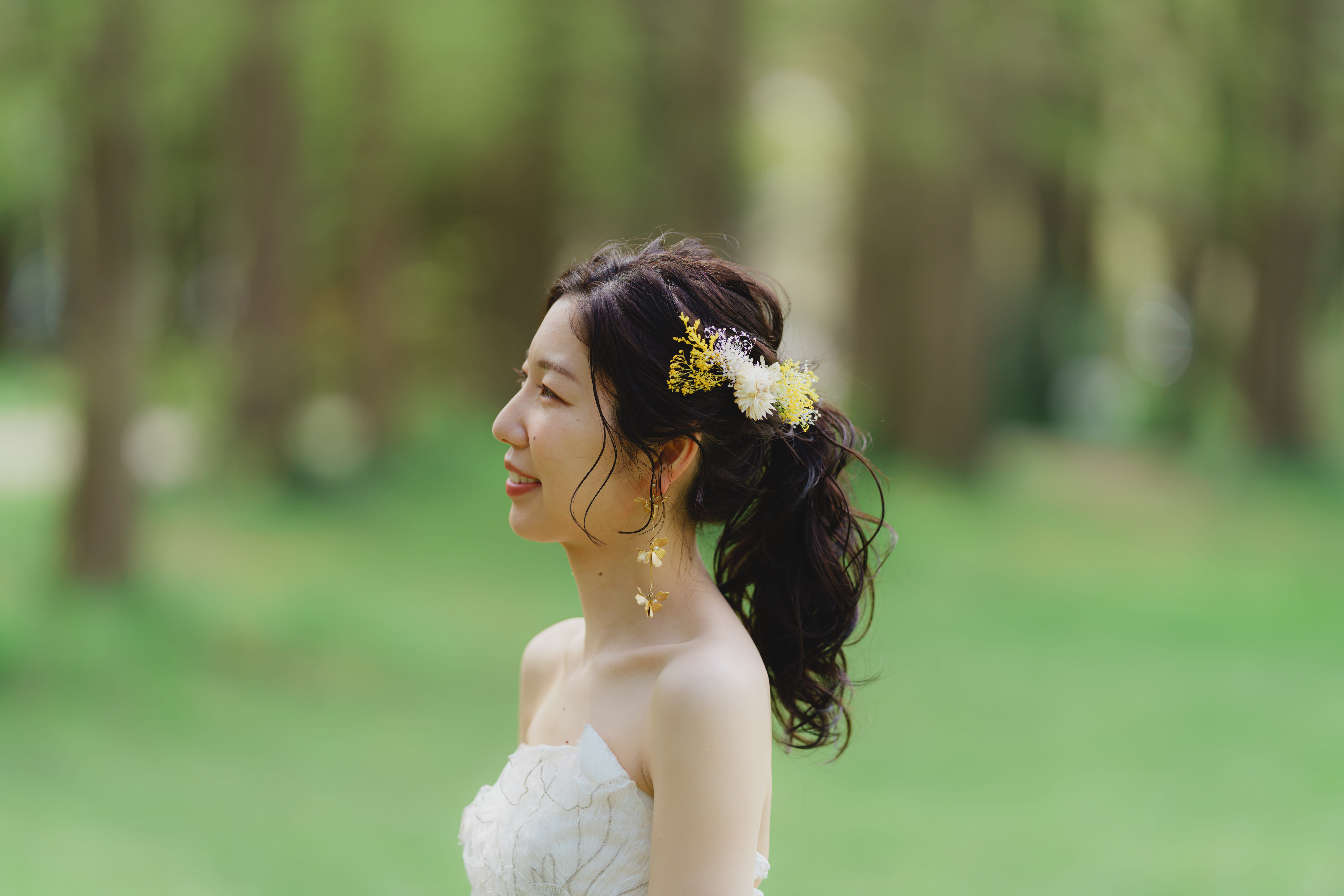 【得意・好きなテイスト】 ナチュラル・大人かわいい・きれいめ 女性らしく優しい雰囲気のヘアメイクがすきです。 お支度中は何でも話しやすい空気感づくりを心がけています。 新婦様が今までで1番かわいくなる瞬間をヘアメイクで楽しんでいただけたら嬉しいです♪ トータルバランスを大切にコーディネート、お花の色味もひとつひとつこだわってつけています♪ 素敵なお写真がたくさん残せるように、ヘアメイクでお手伝いさせて頂けたら嬉しいです!