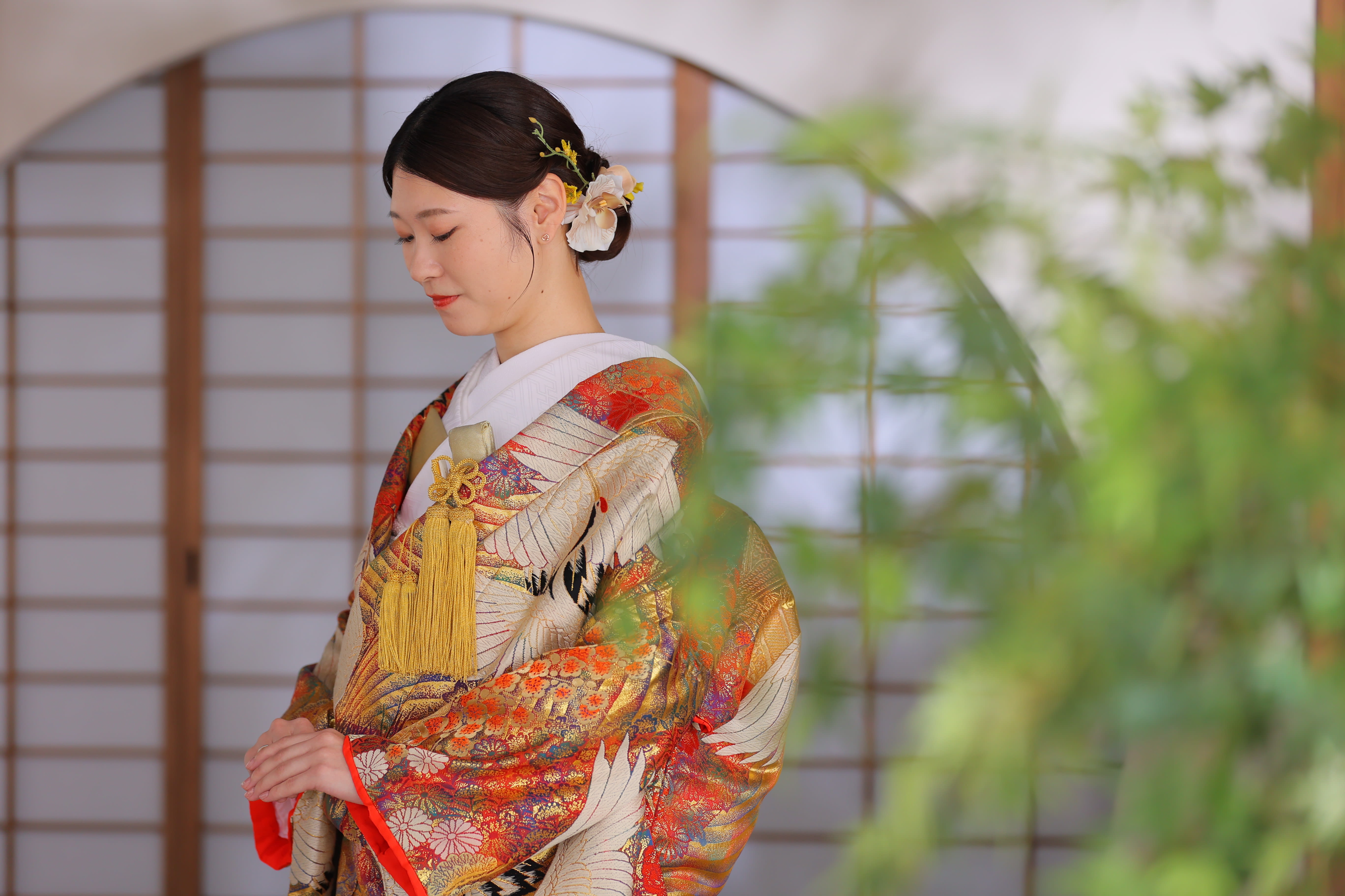 本格日本庭園を再現したスタジオで撮る 和装の結婚写真