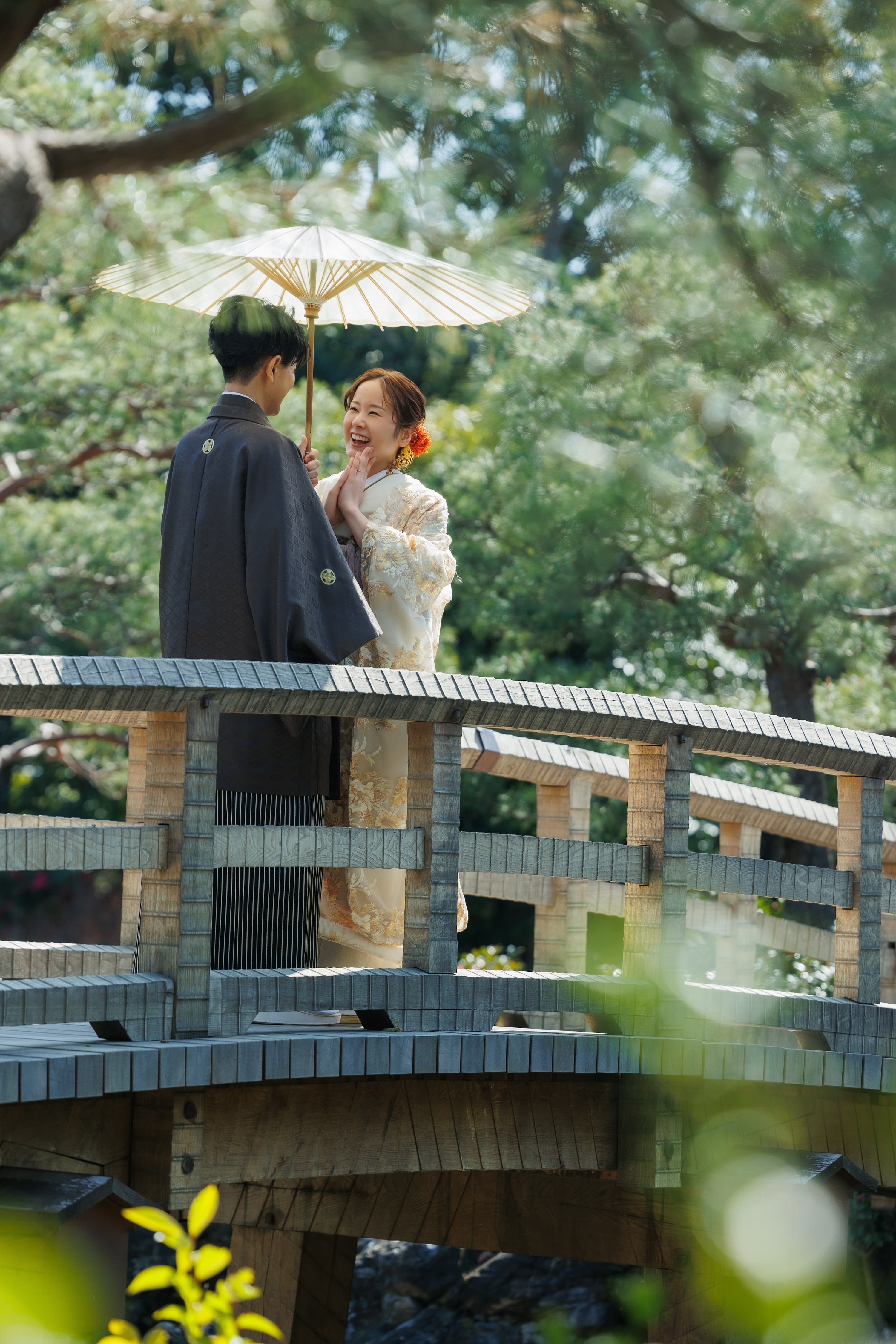 本格日本庭園を再現したスタジオで撮る 和装の結婚写真