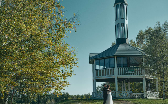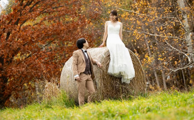 10月になると紅葉やカラマツの黄葉が、まるで絵画のような美しい風景を見せてくれます。ひんやりと澄んだ空気を気持ちよく感じながら、リラックスした雰囲気でフォトウェディングをお楽しみください。