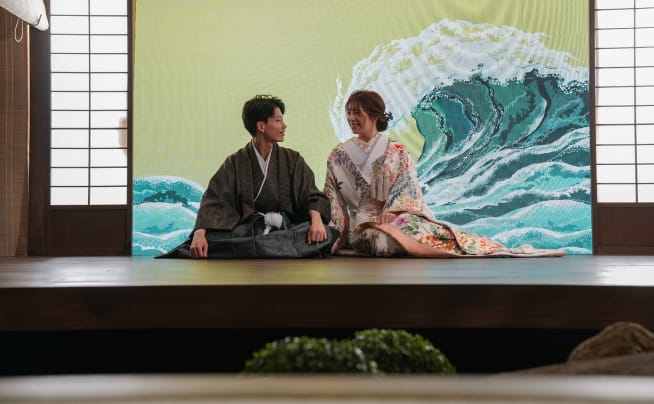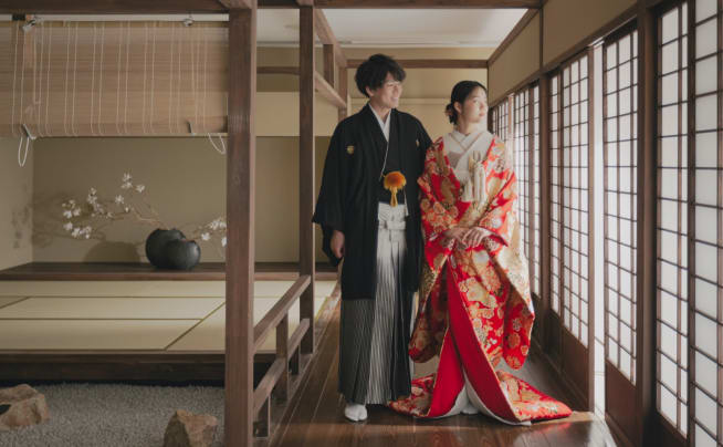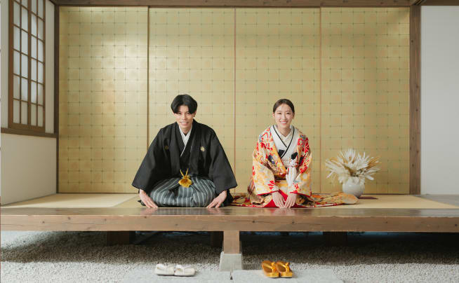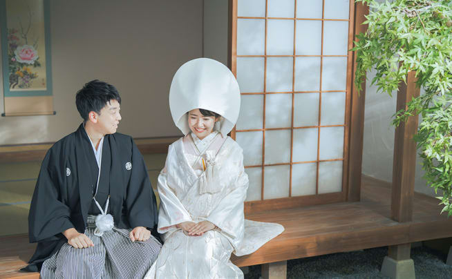 散歩しながらや、縁側に座って、お庭を楽しむナチュラルなおふたりの姿を残すことができます。