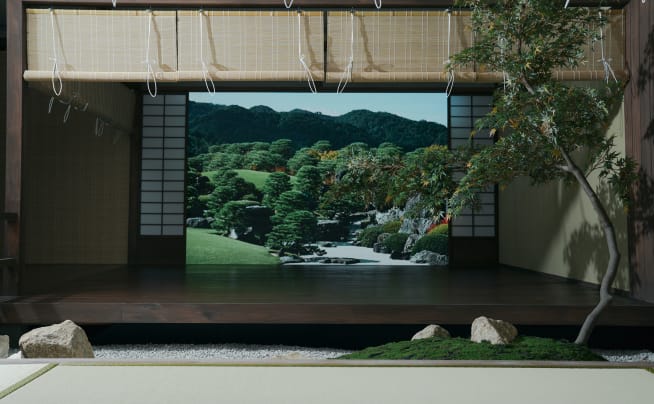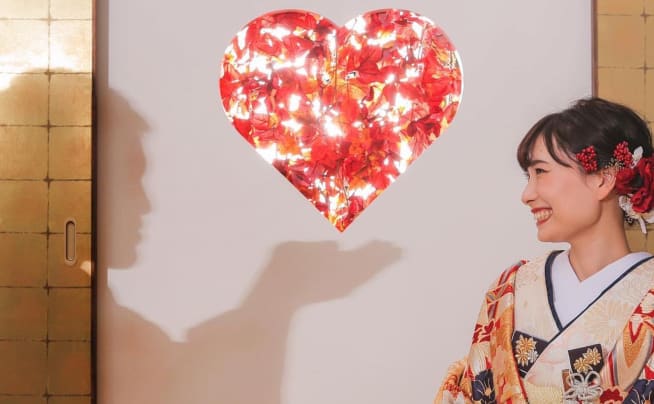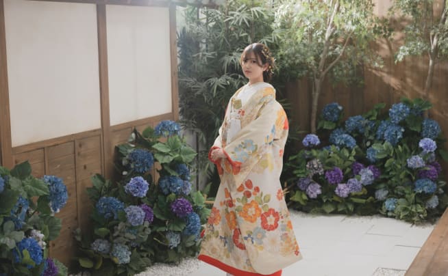 ロケのような写真が撮れると人気の屋内庭園スタジオ。季節を問わず桜や紅葉との撮影が叶います。