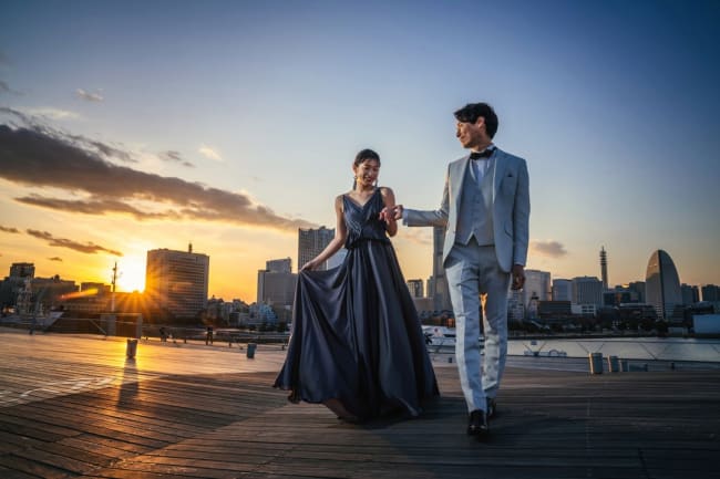 東京都内や横浜みなとみらいなどの人気スポットを選び撮影できます。日中だけでなく夜の撮影もできるため、個性あふれる美しい写真を残したいカップルに最適です。