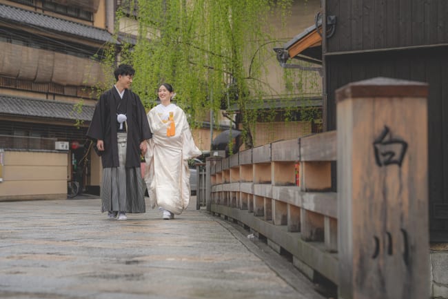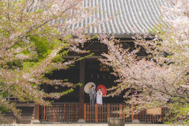 和装フォトウェディングを希望するなら、やはり京都がおすすめです。中でも、有名な神社仏閣が多く残り京町家が並ぶ祇園エリア、歴史ある建物と豊かな自然が共存する嵐山エリアは、どこを切り取っても画になること間違いなし。和傘や扇子などの小物、春の桜や秋の紅葉など季節に合わせた演出を取り入れるなど、楽しみ方もいろいろあります。