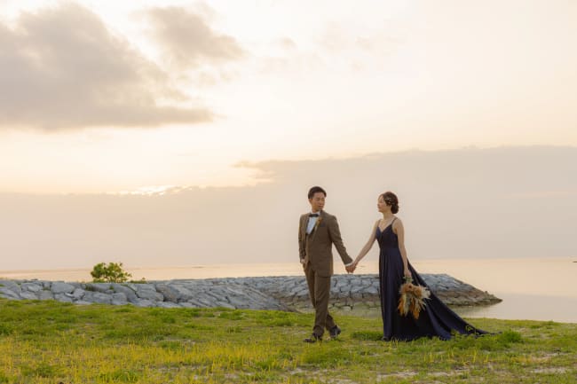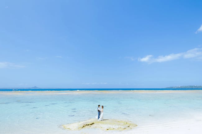 青い海と白いビーチ、青い空は、写真映えする最高のロケーションと言っても過言ではありません。沖縄はパスポート不要の南国リゾート。フォトウェディングの定番スポットのひとつで、高い人気を誇ります。海やビーチでの撮影はもちろん、チャペル、公園の緑、観光名所で撮影したり、沖縄の伝統的衣装である「琉装」を着用したりと、様々なシチュエーションの中から選ぶことができます。