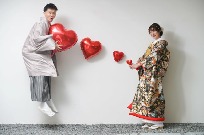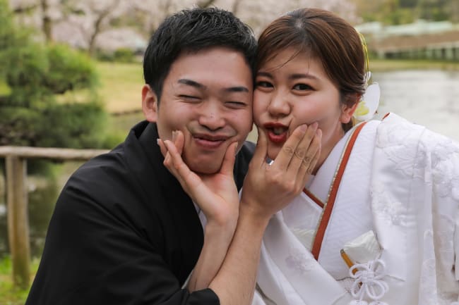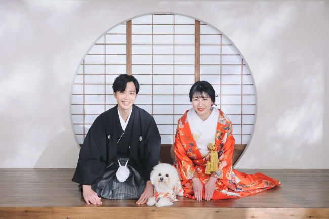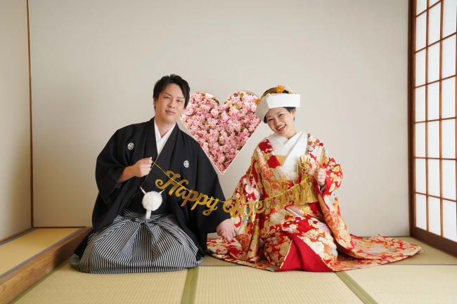 洋装ならブーケやベール、和装なら扇子や神の使いと言われる白狐のお面などを用意し、あえて顔を隠す方法も。衣装に合わせたり、ふたりの思い出のアイテムを使ったりするのも良いでしょう。