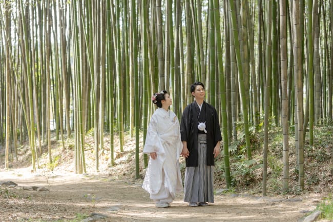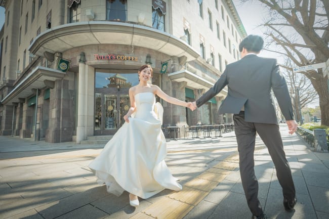チャペルでの撮影であればウェディングドレスがマッチしますし、神社やお寺などのロケーションを利用するなら和装がベストでしょう。撮影地に合わせて選べば、違和感がなく、衣装と背景がマッチする素敵な写真を撮影できます。