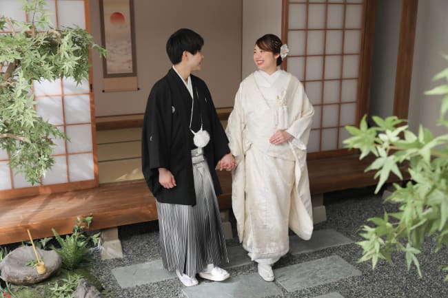 ちなみに、デコルテフォトでは経験豊富なフォトグラファーが、和装にマッチするポーズを提案します。さまざまなバリエーションのスタジオも完備されているため、雰囲気の異なる複数のパターンを楽しく撮影可能です。また、京都や浅草などでのロケーション撮影もおすすめです。和装となじむ季節やロケーションで、おふたりを彩る特別な写真を撮影できます。