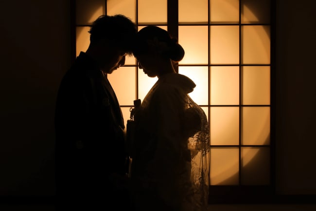 影のシルエットは、和装での前撮りにおすすめのポーズです。和装ならではの体のフォルムは、シルエットとして綺麗に写りやすいのが魅力です。