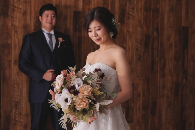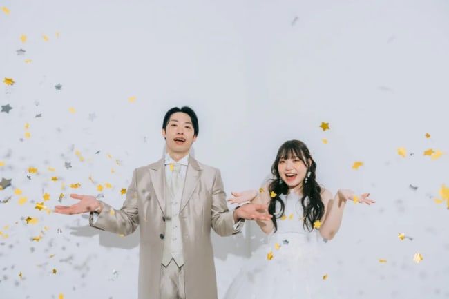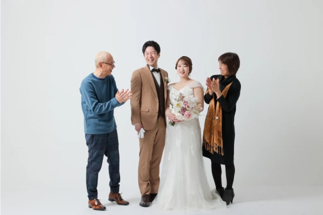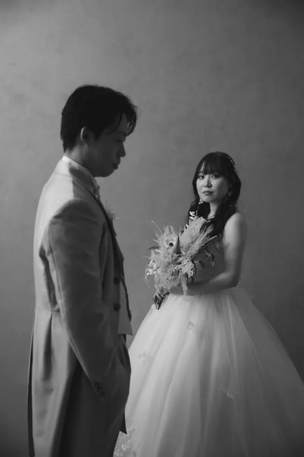 美しいヘアメイクやアクセサリーにこだわることで、より魅力的な一枚に仕上がります。パートナーとのツーショットで顔を寄せ合うような構図も、温かい雰囲気が伝わりおすすめです。