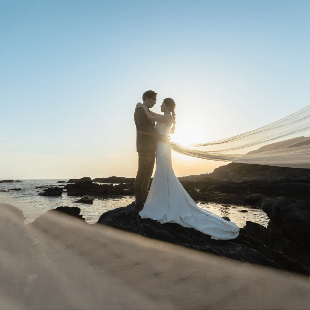 基本プランには、新郎新婦の衣装各1着、新婦ヘアメイク、スタジオ使用料、小物、写真撮影がすべて含まれているため、通常の結婚式より大幅に費用を節約しながら、憧れのドレス姿が叶います。撮影データ全データプランなら、写真を絞りこまずにお気に入りのショットをすべて貰えます。