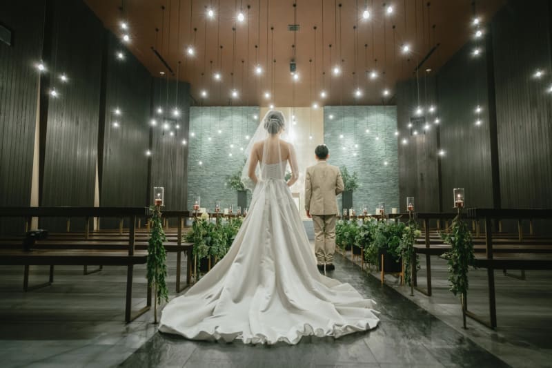 移動が多い式場などの場合は、動きやすいドレスとして、裾が長すぎないドレスが無難です。トレーンの動きに憧れがあるかたはロングベールなどで調整してみてください。
