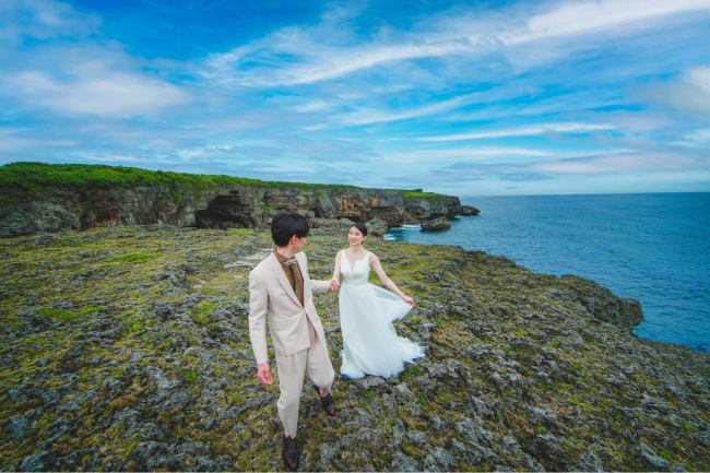宮古島の南東部にある、天然の入り江を利用した美しい入り江公園『イムギャーマリンガーデン』。遊歩道もあるため、入り江の穏やかな海で、安全にウェディングフォトが撮影できるのが特徴です。宮古島の自然を身近に感じて撮影したい方におすすめですよ。