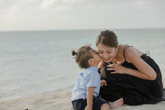 白い砂浜と透き通るようなエメラルドグリーンの海を背景に、家族での幸せな瞬間を写真に収めましょう。砂浜にメッセージを描いたり、ペイントフォトなどのユニークなショットで、オリジナリティあふれる写真を残すのもおすすめ♪
