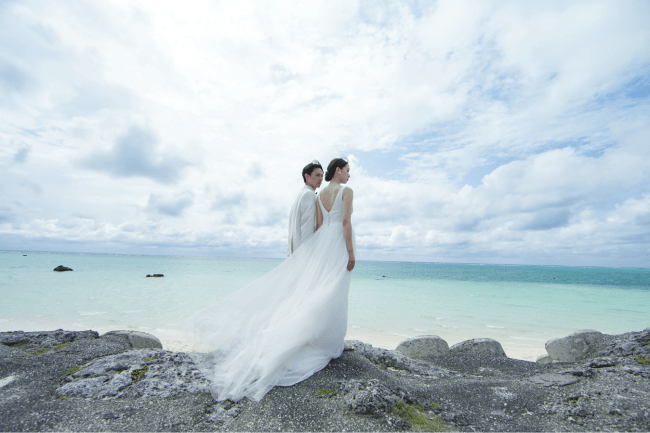 沖縄でのフォトウェディングは、透き通るようなエメラルドグリーンの海、真っ白な砂浜、そして豊かな緑に囲まれたロケーション、どこを取っても絵になります。