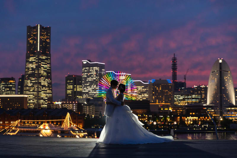夜景が魅力の横浜は、ロマンチックな雰囲気を楽しみたいカップルに最適な場所です。特に大人のムード溢れる記念写真を残すのにもぴったり。