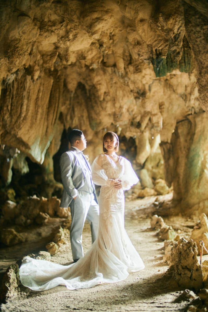 山・岩場などのロケーションでは、自然のダイナミックなスケール感と、ドレスの個性的なデザインが相乗効果を生み、圧倒的な存在感を放ちます。