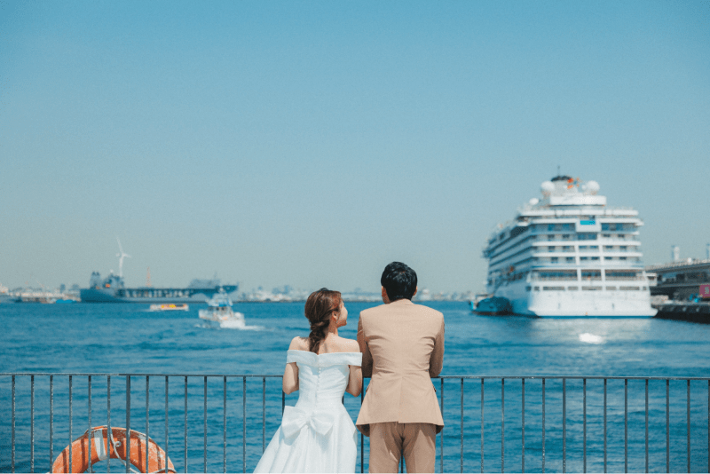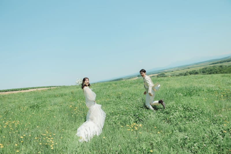 明るい背景での撮影や、ビーチや花畑など動きのあるロケーションを選ぶことで、視線が分散し、おしゃれな背景とともに満足のいくドレス姿が残せますよ。