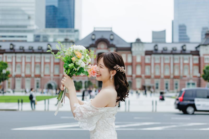洗練された大人の街並みや都会の夜景とも相性が良く、フォトウェディングの人気スポット・東京駅周辺のスタイリッシュな雰囲気によく映えますよ。