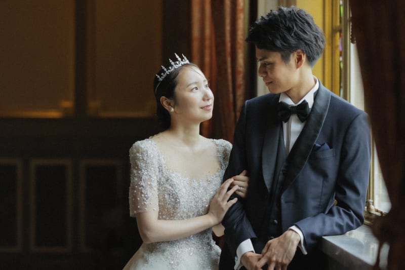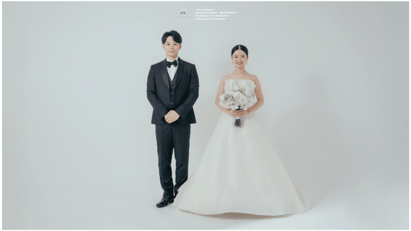 重厚感のある純白のサテンドレスや、気品溢れるクラシカルなロングスリーブ(長袖)ドレスと相性抜群。ふたりが並んだ際のコントラストが美しく、モノクロ写真でも映える格調高いスタイルが叶います。