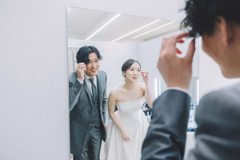 唯一の懸念点は、ご新郎様の衣装にも追加の衣装代がかかること。予算を抑えつつ印象を変えたいなら、ベスト・蝶ネクタイ・ポケットチーフといった小物だけをチェンジするのがおすすめです。