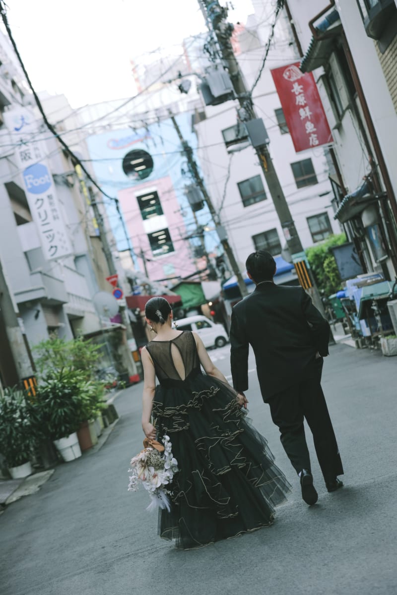 都会の喧騒やシャープな近代建築を舞台にしたフォトウェディングだからこそ撮影できる「躍動感」と「ふたりのストーリー」を意識しましょう。