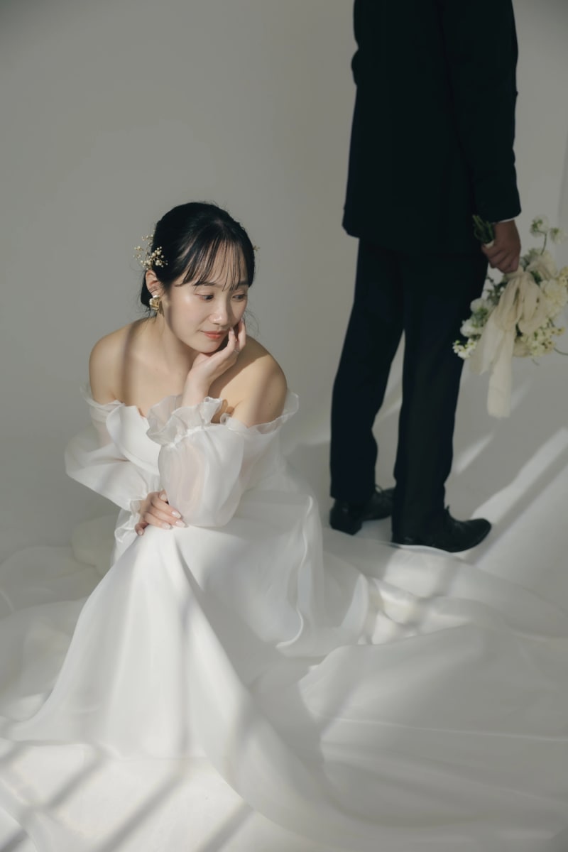 計算し尽くしたスタジオの空間だからこそ、いままでにないスタイリッシュなブライダルフォトも叶えられます。
