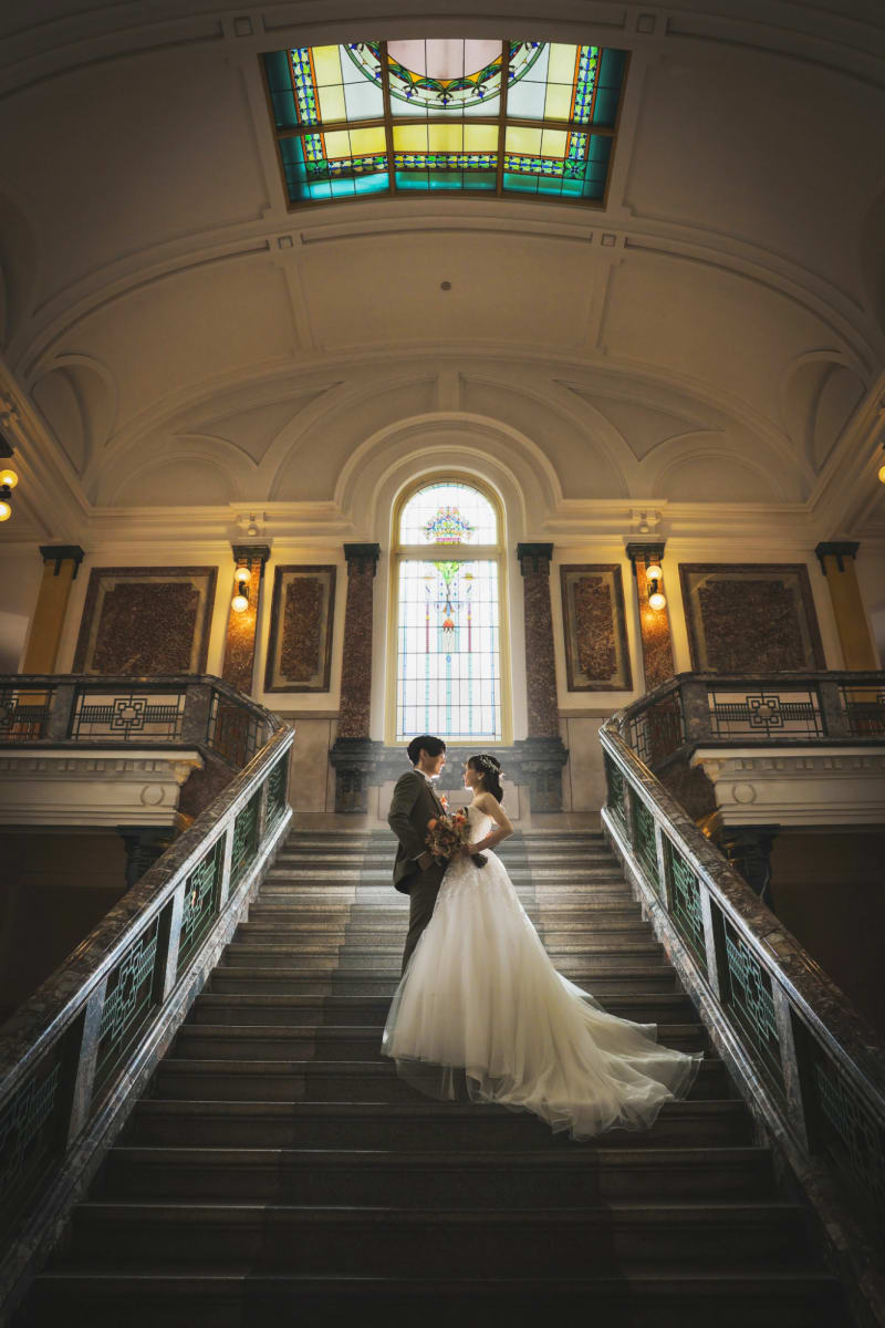 近代建築でのロケーション撮影は、新郎新婦を気品ある貴族のように引き立てます。名古屋・市政資料館はネオ・バロック様式の重厚な建築。大階段や煉瓦造りの背景に、ラブストーリーが始まりそうな一枚を撮影してみてはいかがでしょう?