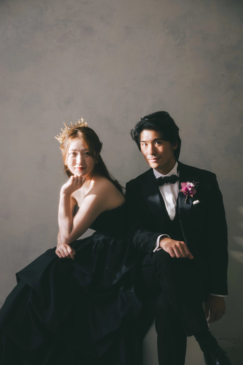 大人なふたりだからこそ着こなせる、甘さを抑えたスタイリッシュな衣装選びが鍵となります。