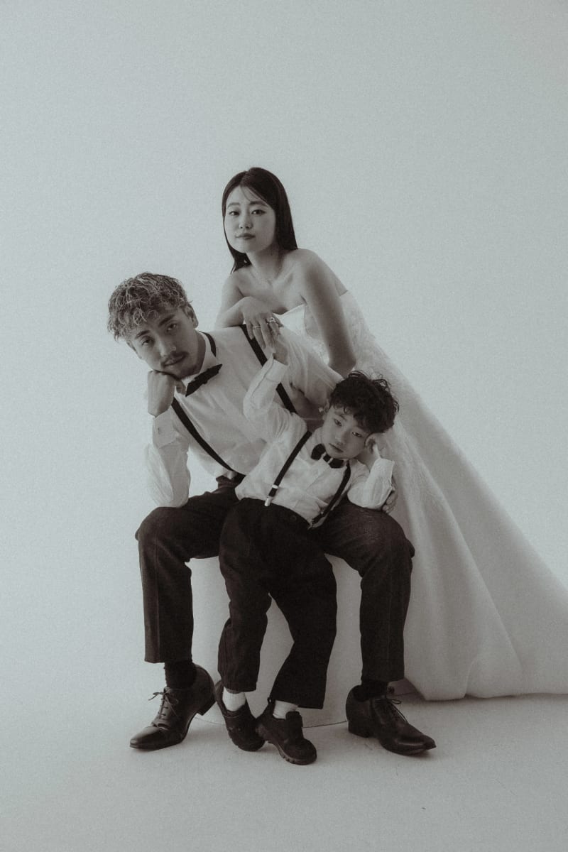 趣味の楽器を手にすると、いつのまにか姿勢が整い、CDジャケットのような立ち姿に。せっかくなら、普段から演奏しているギターやベースなどを持って自分たちらしい個性を込めた一枚を撮影しましょう。