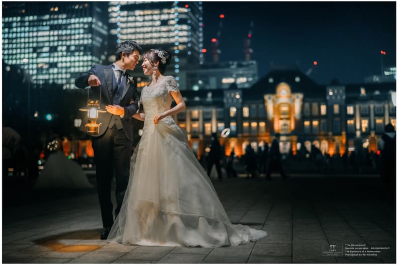 洗練された都会の風景は、それ自体が完成された構図。日常で見慣れた風景も、晴れ姿のウェディングドレスとタキシードを纏って切り取れば、瞬時にアーティスティックな世界観へと変貌します。
