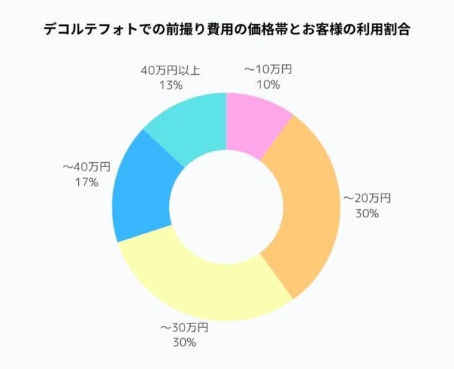 以下は、デコルテフォトを利用したカップルの前撮り費用の価格帯と、それぞれの利用割合です。