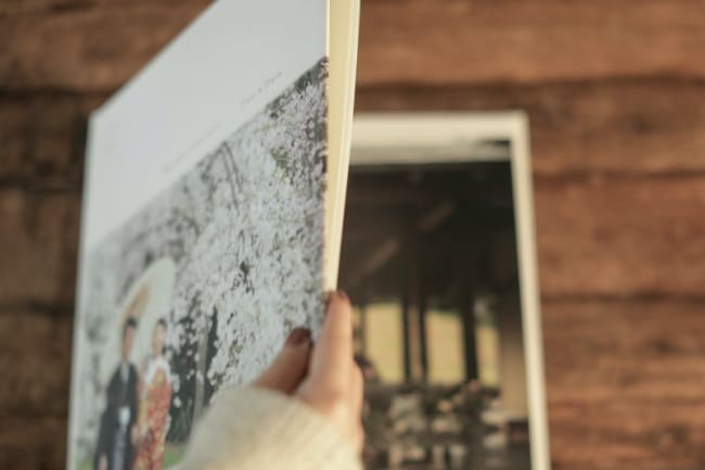 「式やはがきに活用するのもいいけれど、前撮り写真を大切に保管しておきたい」と考える方は、アルバムを作っていつでも好きなときに見返せるようにするのもおすすめです。