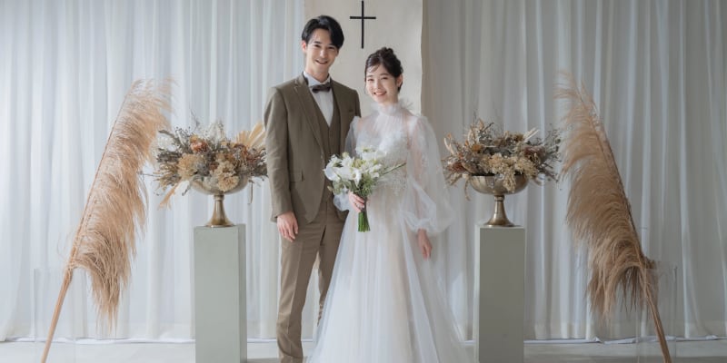 冬は雪景色やイルミネーション、夜景などの背景が映えますが、緑や花などの自然は乏しくなりがちです。緑豊かな雰囲気で撮影したい場合や、鮮やかな花々に囲まれて前撮りに臨みたい場合には、オブジェやボリュームのあるブーケを取り入れたり、自然を取り入れたようなセットのあるスタジオを利用したりするなどの工夫が必要です。