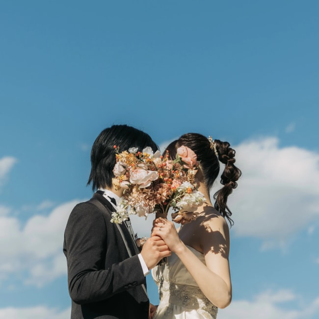 また、撮影当日のヘアメイクは技術力・経験に自信があるスタッフが担当。バリエーション豊かなスタジオ内もしくはロケーションでマッチするよう、お二人を華やかな姿へと導きます。