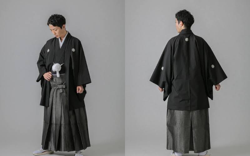 紋付袴には格式があり、第一礼装とされているのは「五つ紋の黒紋付羽織袴」と呼ばれるものです。