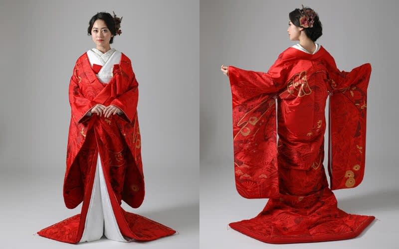 江戸時代から婚礼衣装として受け継がれてきた引振袖は、もともと裾を引きずって歩くことからこのような名前が付けられました。