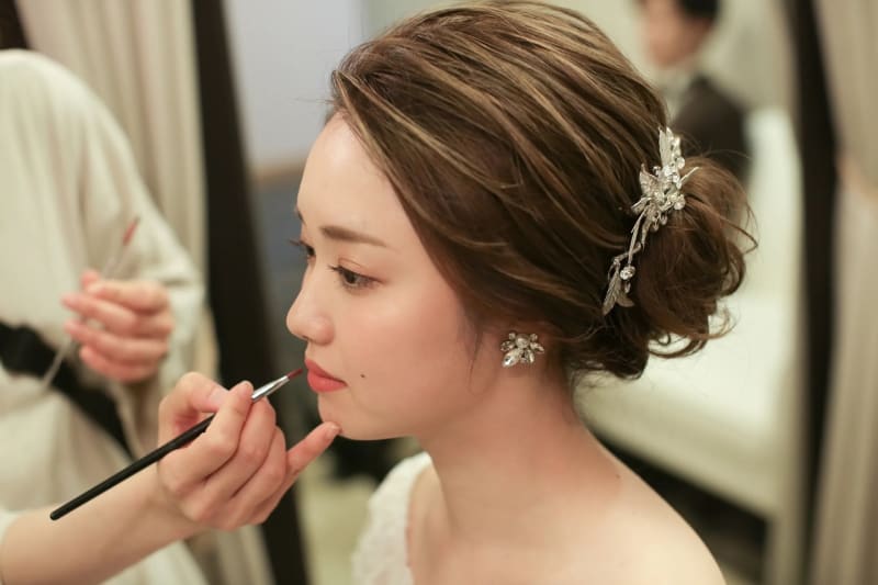 衣装だけではなく、式場の雰囲気にマッチするようにメイクを仕上げたり、お色直しを視野に入れてメイクをすることもあります。