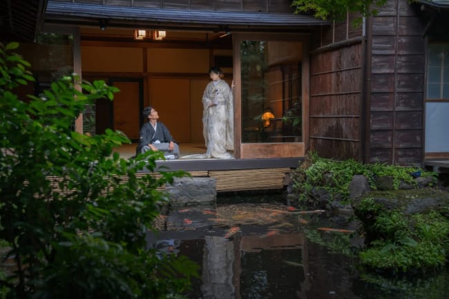前撮りでは、和装の写真をお知らせ用に年賀状へと使ったり、挙式では着ないカラードレスの写真をウェルカムボードに使ったりと活用することが多いため衣装やイメージに合わせたロケーション選びも重要。