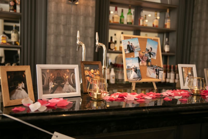 ウェルカムスペースの飾り付けの定番である、写真や写真立てはぜひ活用したいアイテムです。前撮りの写真を使ったり、これまでの思い出の写真をおしゃれに加工して飾ったりするとよいでしょう。