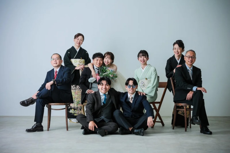 おふたりの撮影だけでなく、ご家族やご友人も一緒に撮影できるスタジオが増えています。もちろん、デコルテフォトでも参加可能です。